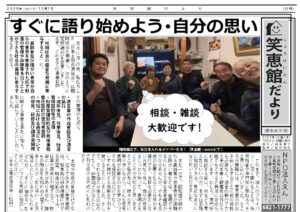 裏面に、笑恵館の今月のイベントスケジュールを掲載しています。