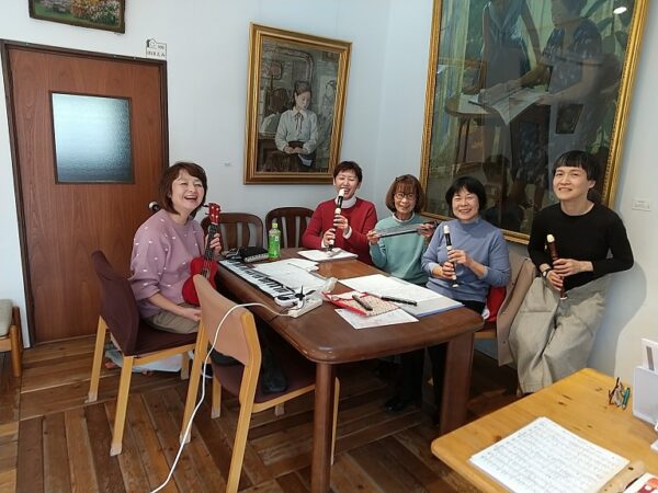 持ち寄って簡単な曲をめざしながら楽しく練習します。