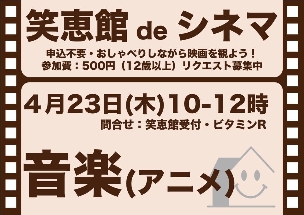 今月の笑恵館deシネマの日程とタイトルが決まりましたのでお知らせします。