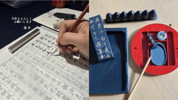 1月レッスンは、毛筆で半紙作品・写経にチャレンジ。
