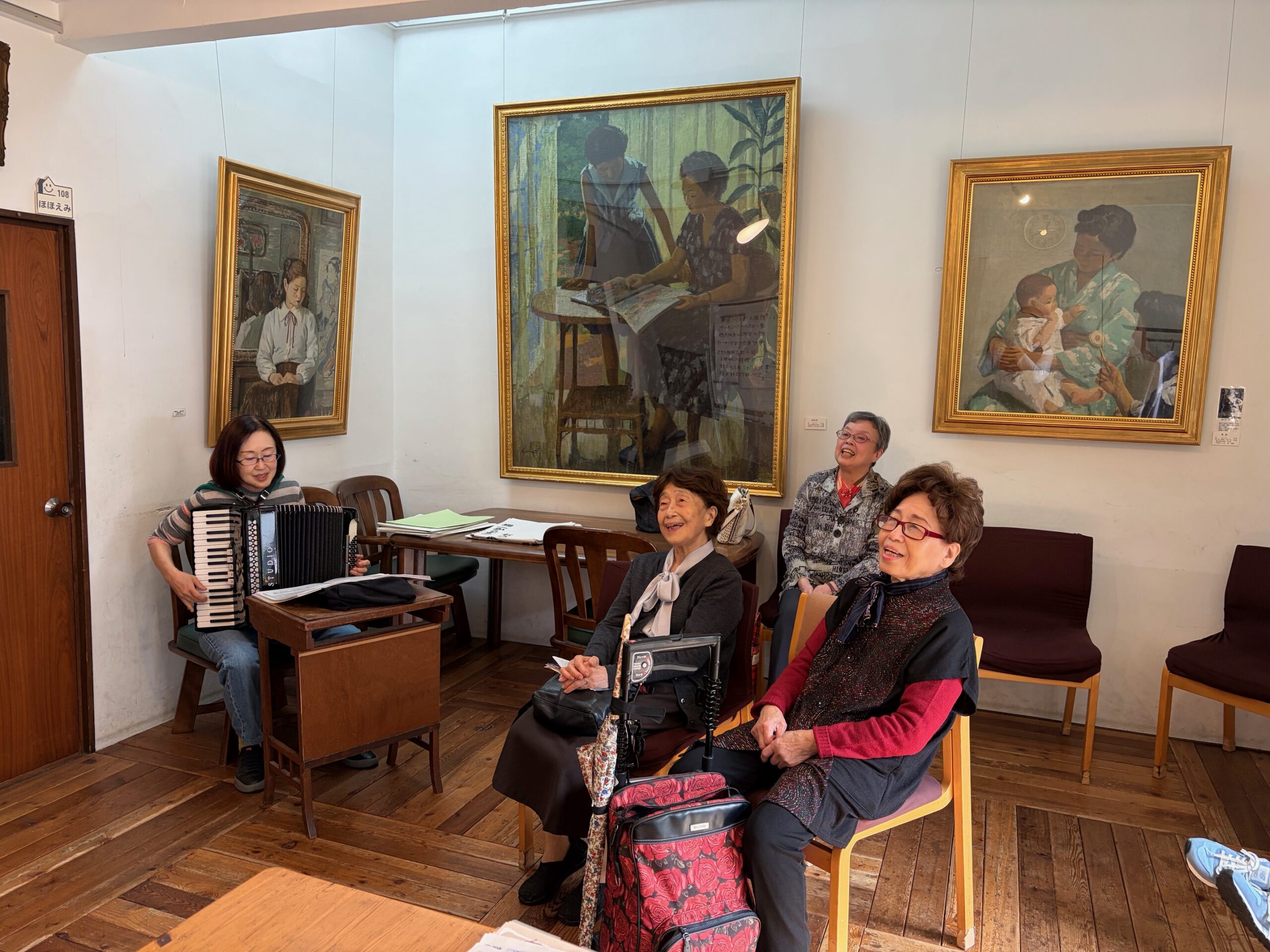 今月もアコーディオンの伴奏で(佐藤倫子先生)